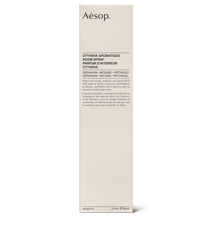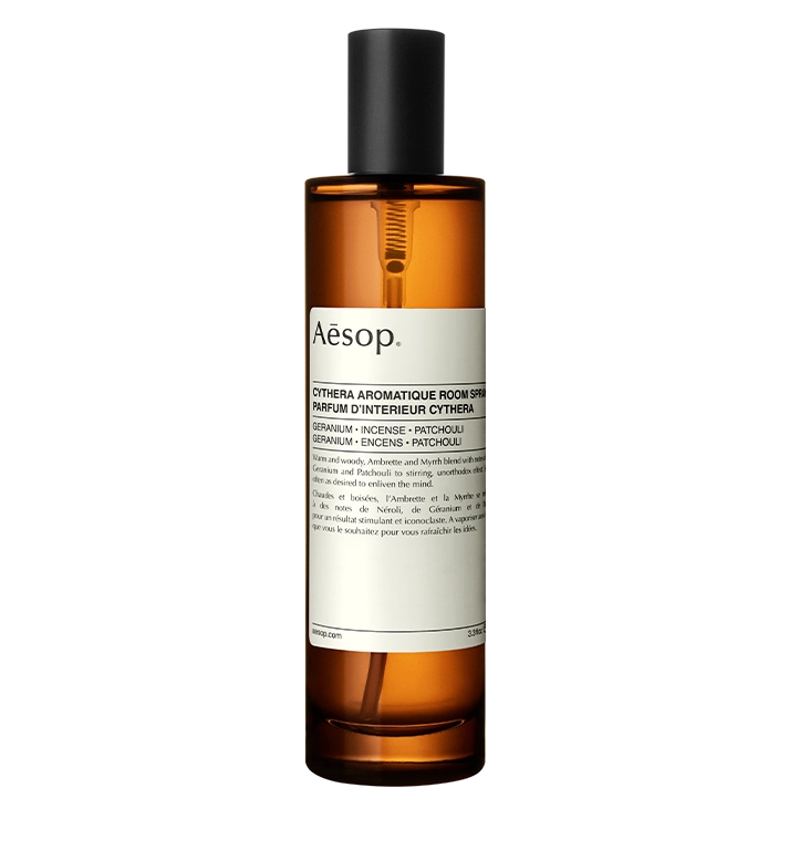 Un souffle chaud et équilibré. Cythera mêle la douceur du géranium à la profondeur de la myrrhe et du patchouli. L’encens traverse le tout comme une ligne d’ombre, discrète mais présente. Il suffit de deux ou trois pulvérisations pour que l’atmosphère s’imprègne de cette chaleur boisée, qui persiste plusieurs heures.